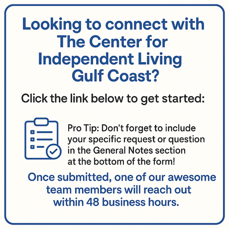 Welcome to the Center for Independent Living of the Gulf Coast website! Our mission is to offer assistance to people with disabilities in fulfilling their goals of independence and self-sufficiency. See how our work is changing lives!